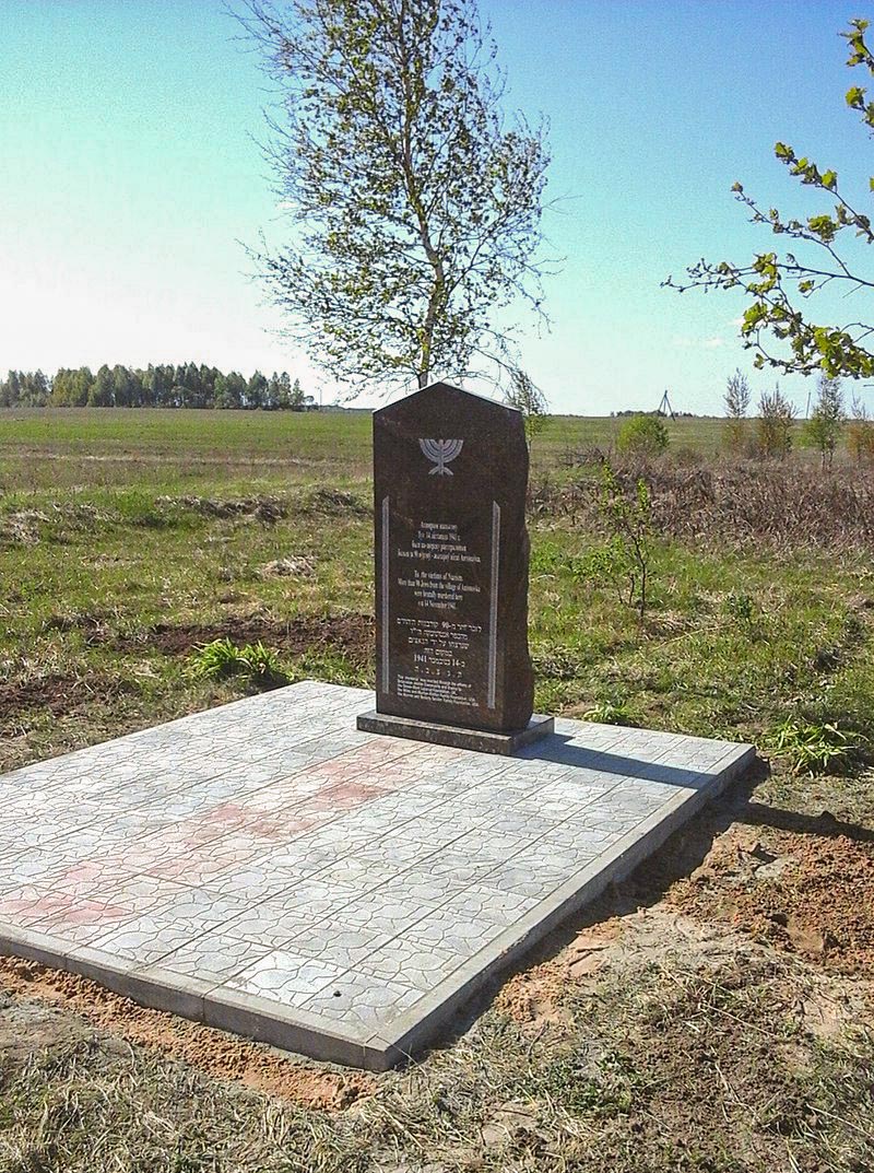 Monument to the Jewish inhabitants of the village of Antonawka killed by the Hitlerites, in the agrotown of Maliacichy, Krychaw Rajon, Magiliow Voblasc.