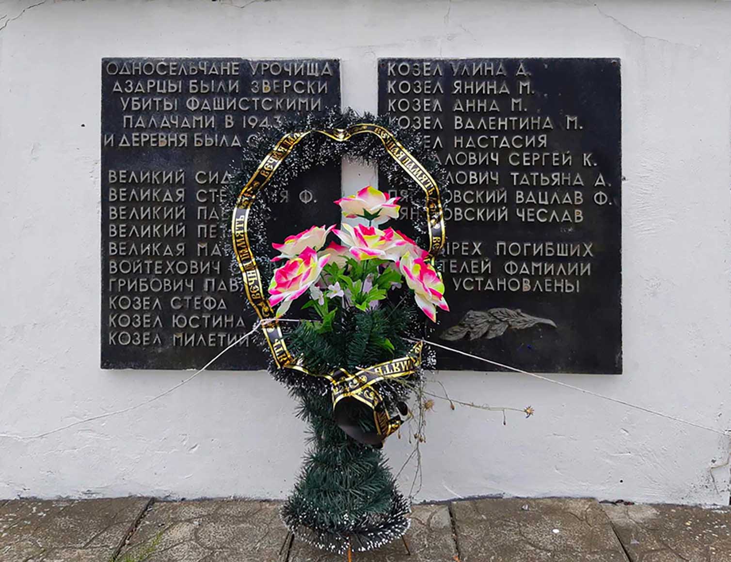During the punitive operation on June 12, 1943, the Hitlerites slaughtered 27 inhabitants (with four of them thrown into flames), burned the village (9 homesteads).