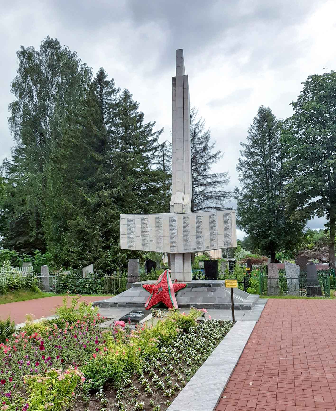 mass graves of Soviet soldiers; ones of Soviet soldiers and partisans; ones of underground members, including on the military plot of the civilian cemetery; ones of Soviet war prisoners; graves of Heroes of the Soviet Union V. I. Matronin, I. P. Lisin, A. G. Nakonechnikov, two-time Hero of the Soviet Union M. T. Stepanischev, major general I. L. Ragulia, Soviet soldiers F. V. Chorny and A. I. Astrowski, underground member M. F. Darashevich and his relatives; graves of fascism victims; monuments were raised on these graves;